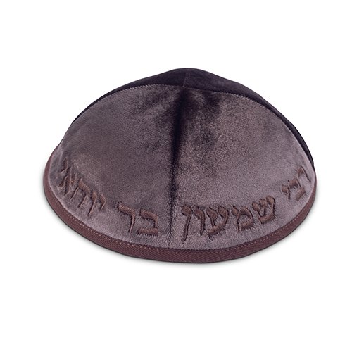 כיפה קטיפה "ארט-מן" עם ריקמה רבי שמעון גודל 3 – חום כהה