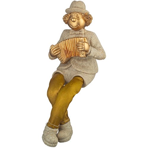 ליצן יושב מפוליריזן עם רגלי בד כסף מנגן באקורדיון