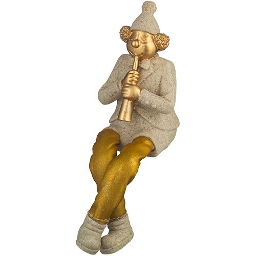 חסיד יושב מפוליריזן שחור עם רגלי בד כסף 25 ס"מ מנגן בקלרינט