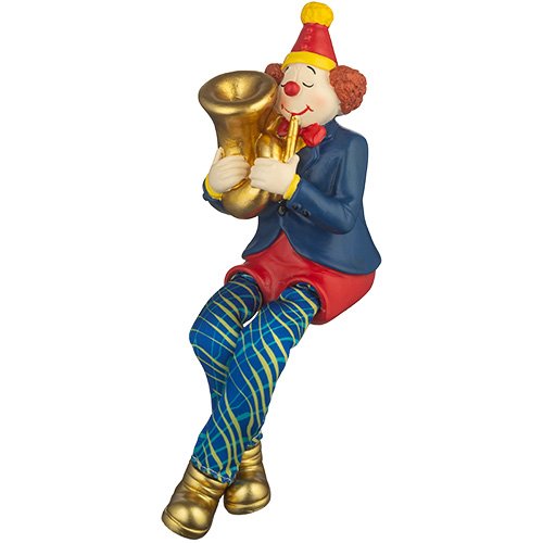 ליצן יושב מפוליריזן עם רגלי בד מנגן בטרומבון