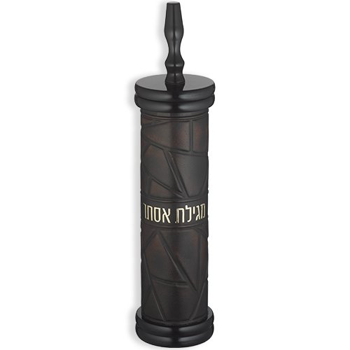 מגילת אסתר אשכנזי עץ + פיו כותל עם פלקטה עבור קלף 31 ס"מ