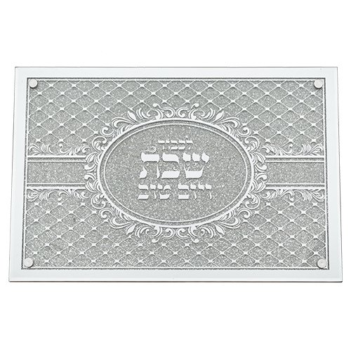 מגש זכוכית מהודר לחלה עם מראה ונצנצים 45X30 ס"מ