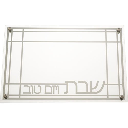 מגש חלה זכוכית מהודר "אבנים" עם רגליים בעיטור "ג