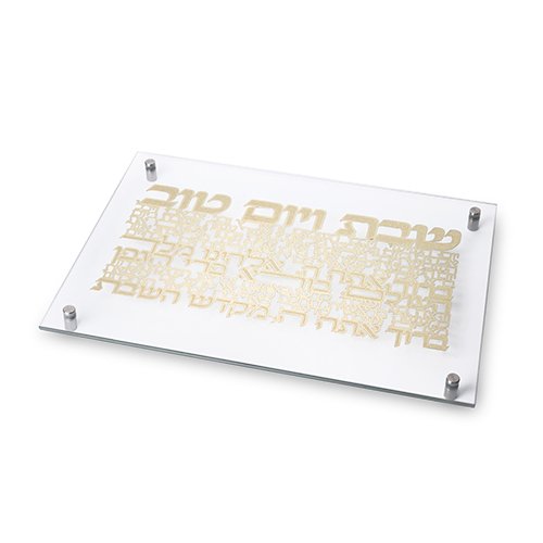 מגש חלה זכוכית עם פלקטה זהב יום השישי 42X29 ס"מ