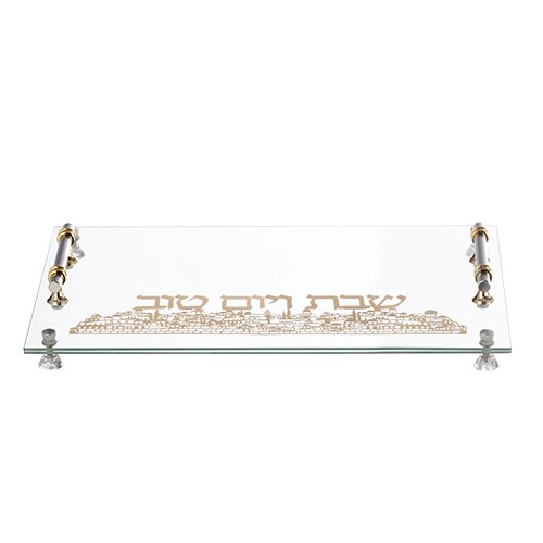 מגש חלה מהודר מזכוכית עם פלקטה "ירושלים" 30*45 ס"מ