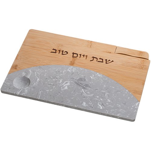 מגש חלה מהודר מעץ במבוק עם שיש וסכין 30*45 ס"מ
