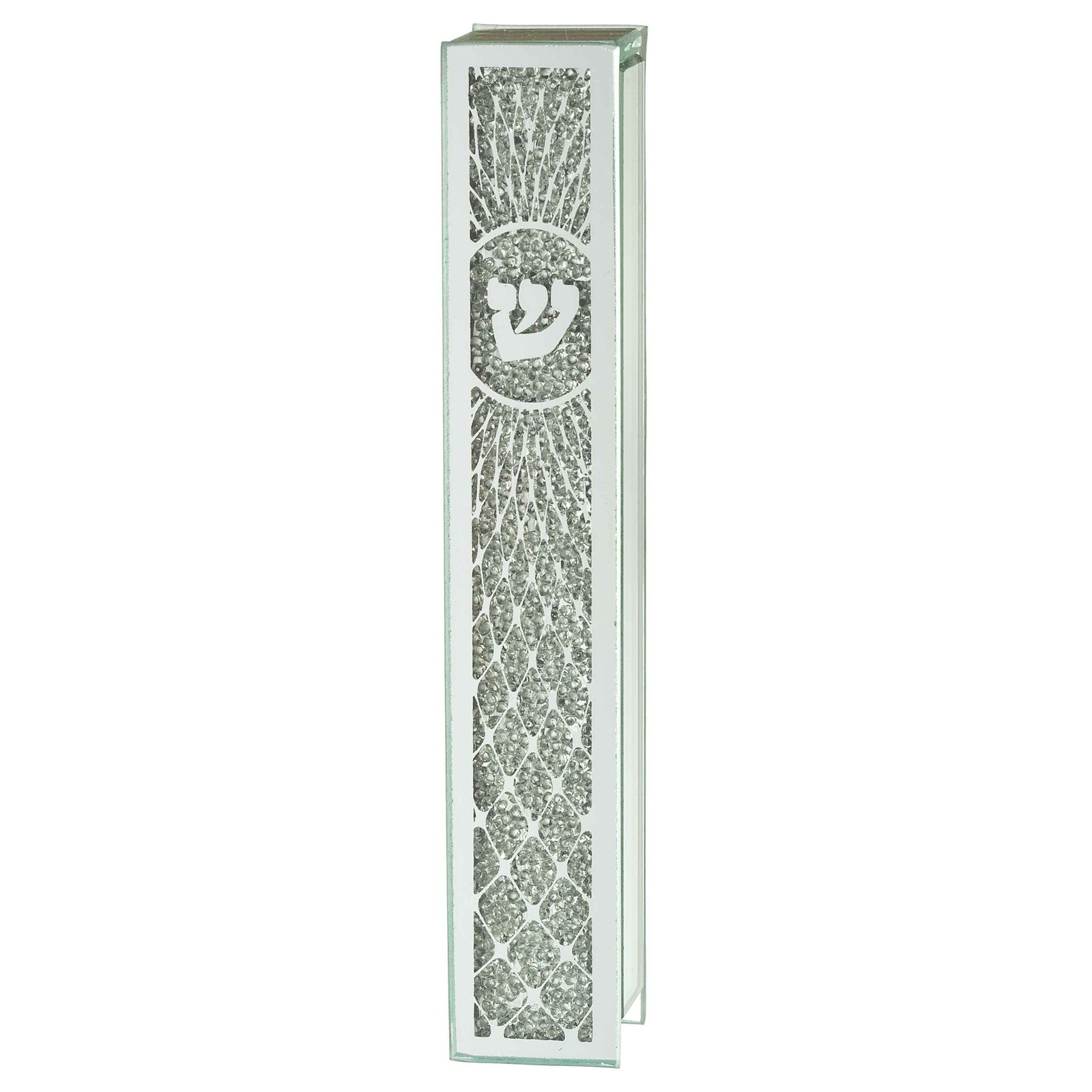 מזוזה זכוכית מהודרת עם מראה ואבנים 15 ס"מ
