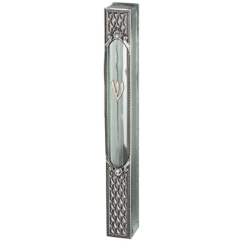 מזוזה זכוכית מהודרת עם פלקטה "עיטורים" 15 ס"מ