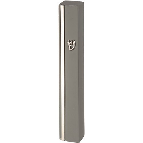מזוזה סמנט 12 ס"מ מהודרת – אפור כהה עם ש' כסף