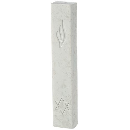 מזוזה ש + מגן דוד חרוטים פולימר לבן 15סמ