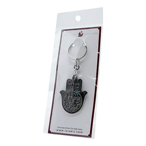 מחזיק מפתחות חמסה "מזל" שיבוץ אבנים 5.5 ס"מ – ניקל