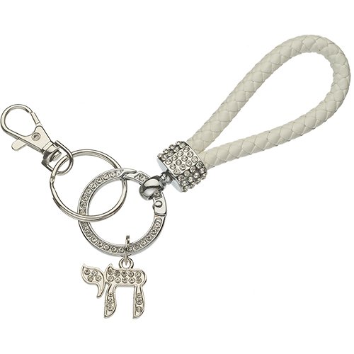 מחזיק מפתחות ניקל עם לולאה חי ושיבוץ אבנים