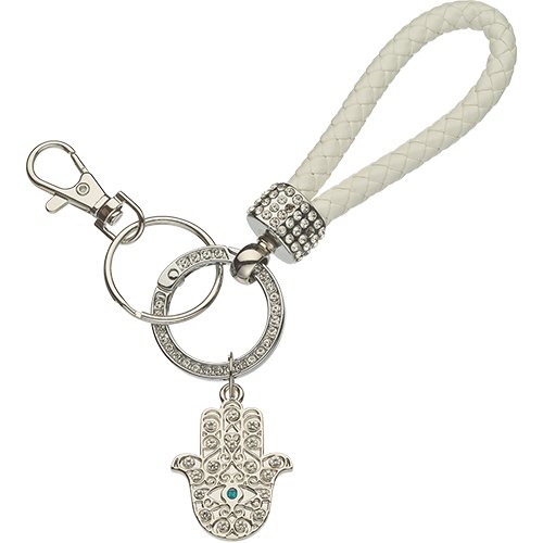 מחזיק מפתחות ניקל עם לולאה חמסה ושיבוץ אבנים