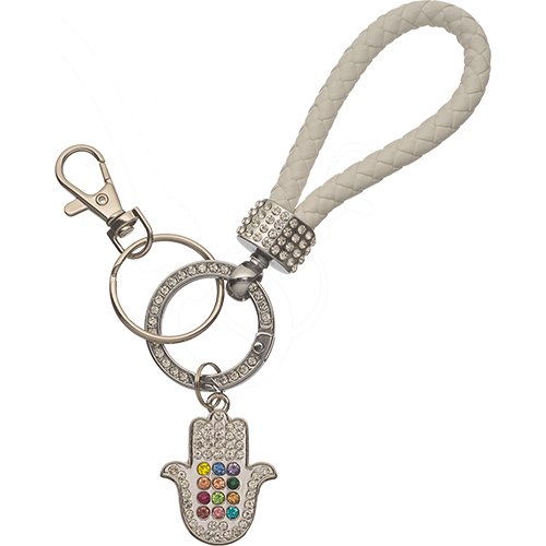 מחזיק מפתחות ניקל עם לולאה חמסה ושיבוץ אבנים