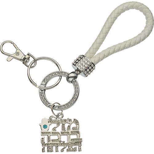 מחזיק מפתחות ניקל עם לולאה מזל ברכה והצלחה ושיבוץ אבנים