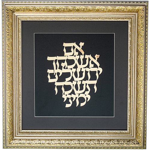 מסגרת ממוסגרת לתלייה עם פלקטה זהב 42×43 ס"מ- אם אשכחך ירושלים