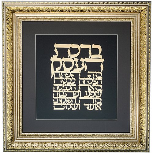 מסגרת ממוסגרת לתלייה עם פלקטה זהב 42×43 ס"מ- ברכת העסק