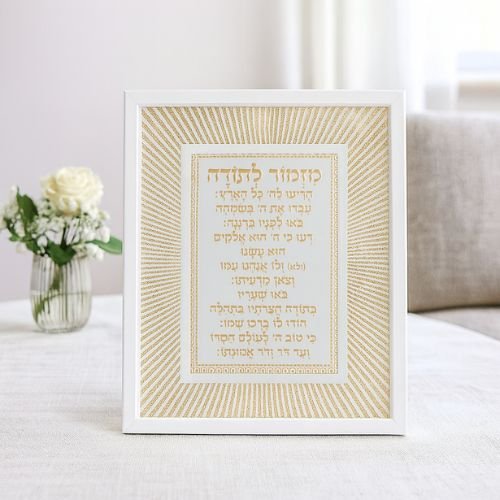 מסגרת נצנצים מזכוכית עיצוב "קווים" מזמור לתודה 22×17 ס"מ