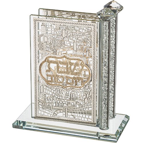 מעמד לגפרורים קריסטל עם פלקטות "ירושלים" 12*12 ס"מ