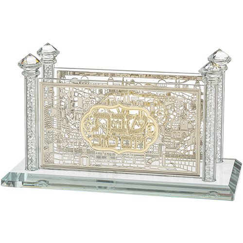 מגש חלה מהודר מזכוכית עם רגליים ואבנים "שבת ויום ט