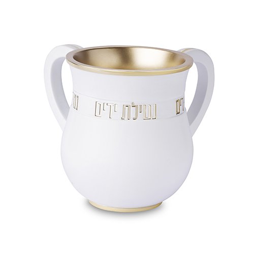 זוג מגבות לבנות "נטילת ידיים" עם שיבוץ אבנים מהודר