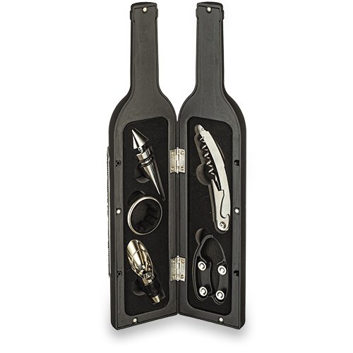 תיבה דמוי עור ועץ לבקבוק יין כולל סט אביזרים 11×35 ס"מ