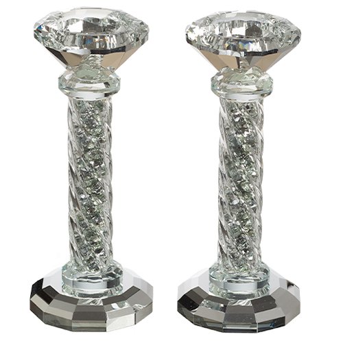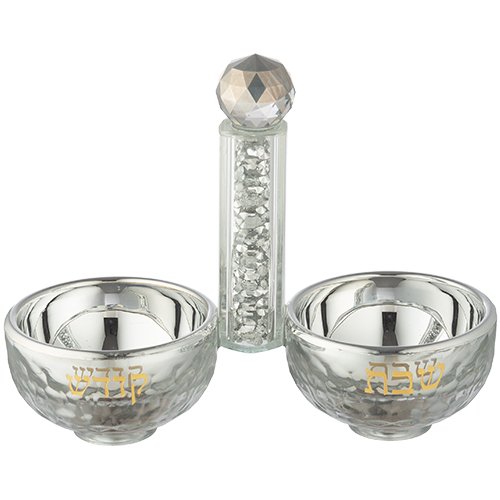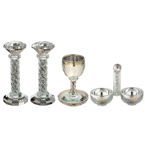 סט גביע קידוש + פמוטים + מלחייה מקריסטל עם אבנ
