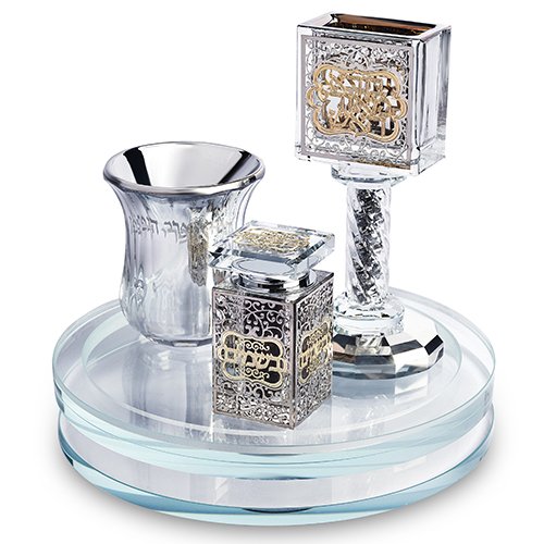 סט הבדלה קריסטל שקוף עם פלקטה מגש מסתובב 20סמ