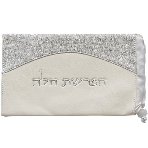 סט הפרשת חלה דמוי עור לבן "אותיות בולטות" כסף 40 ס"מ