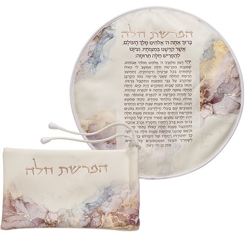 סט הפרשת חלה דמוי עור לבן "אותיות בולטות" 40 ס"מ