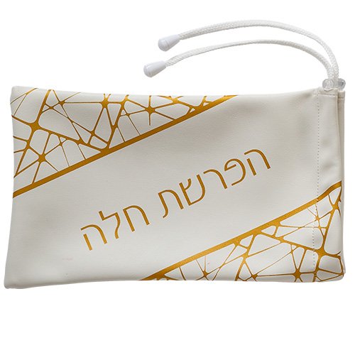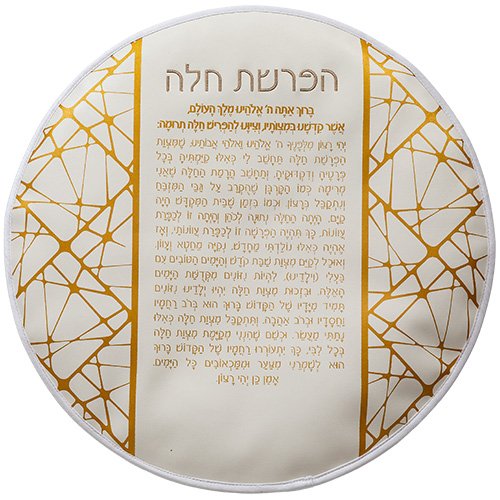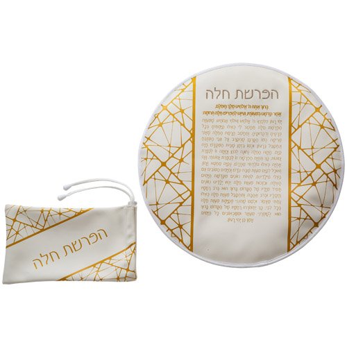 סט הפרשת חלה דמוי עור לבן "אותיות בולטות" כסף 40 ס"מ