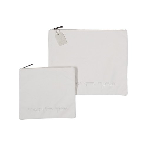 008 סט טלית תפילין דמוי עור לבן אותיות בולטות "ויברכך"