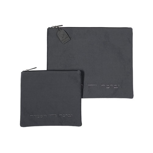 סט טלית תפילין דמוי עור אפור "כותל" עם הבלטה "