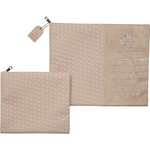 סט טלית תפילין דמוי עור אותיות בולטות "יברכך" כסף 31*38 ס"מ