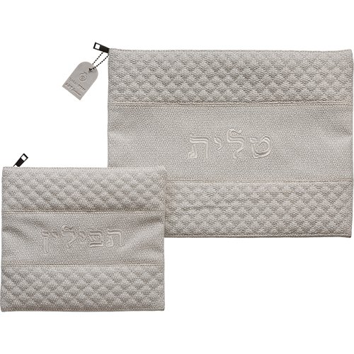 סט טלית תפילין מהודר דמוי עור אפור בטון 3629סמ