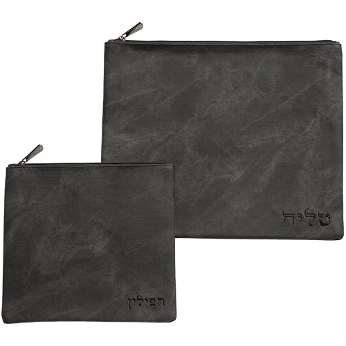 סט טלית תפילין מהודר דמוי עור אפור בטון 3629סמ
