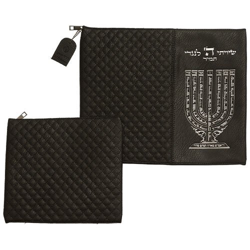 סט טלית תפילין דמוי עור שחור אותיות בולטות "שיויתי" כסף 36*29 ס"מ