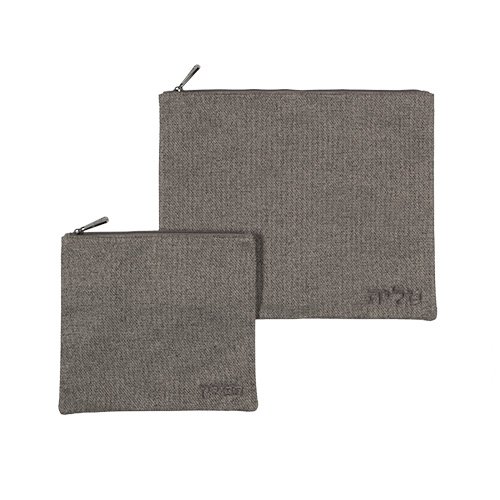 סט טלית תפילין דמוי עור אפור "כותל" עם הבלטה "