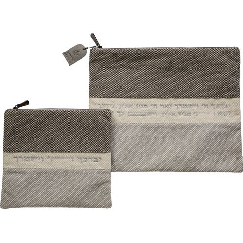 סט טלית תפילין מהודר בד ארוג אפור כהה ואפור בהיר עם רקמה 3629סמ