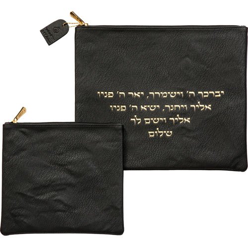 כמות של סט טלית תפילין פיו שחור יברכך אותיות בולטות זהב