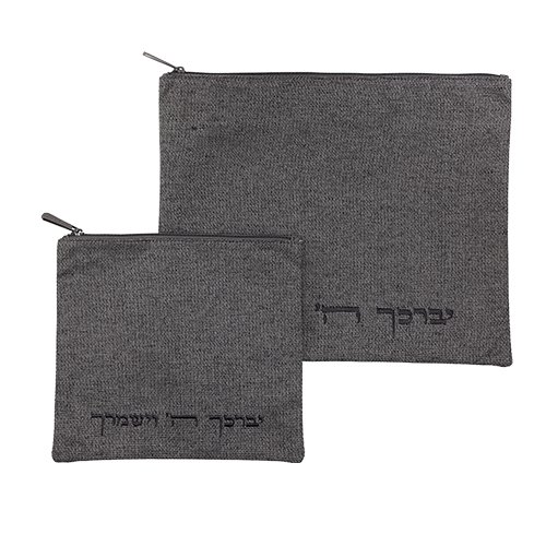 סט טלית תפילין רש"י-תם דמוי עור שחור ואפור עם ריקמה 38*41 ס"מ