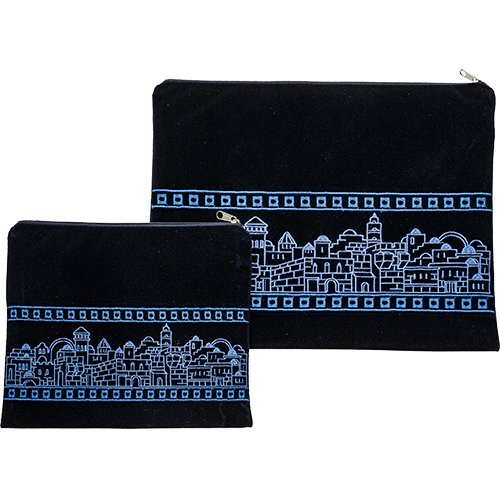 סט טלית תפילין קטיפה עם ריקמה 36×29 ס"מ