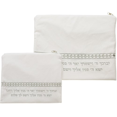 008 סט טלית תפילין דמוי עור לבן אותיות בולטות "ויברכך"