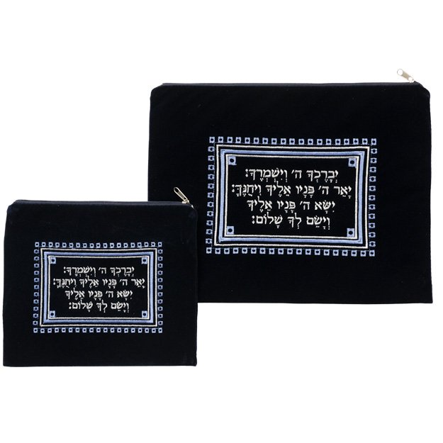 סט טלית תפילין קטיפה עם ריקמה 36×29 ס"מ