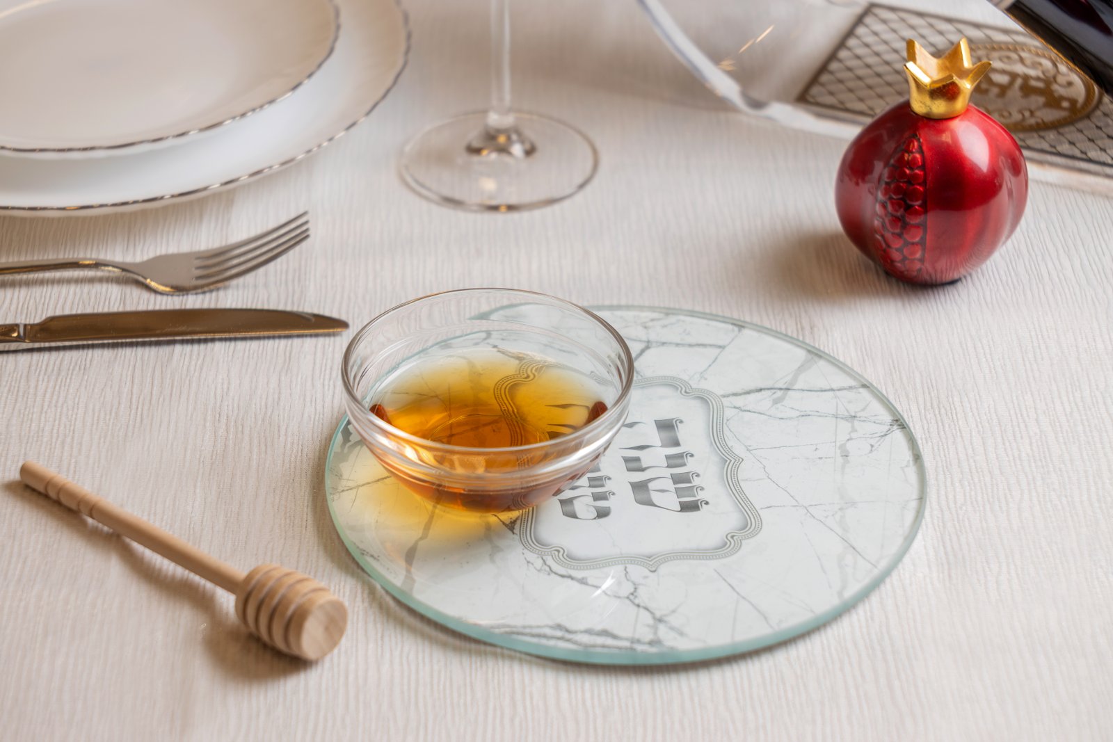 סט להגשת תפוח בדבש זכוכית בלתי שבירה 19 ס"מ