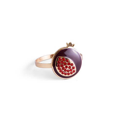 סט 6 חבקי מפית זהב רימון בורדו עם אבנים אדומות