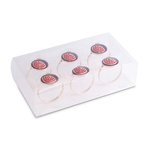 כמות של סט 6 חבקי מפית זהב רימון בורדו עם אבנים אדומות