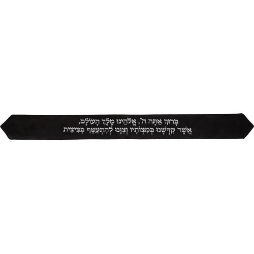 עטרה לטלית 9×100 ס"מ עם רקמה "ברוך" – שחור