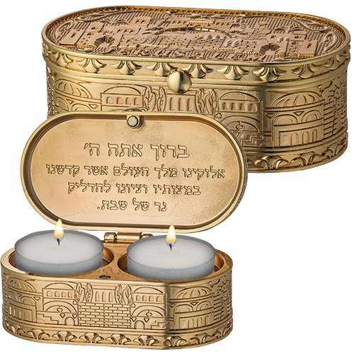 פמוטי קריסטל עם פלקטה הדלקת נרות "ירושלים" 24 ס