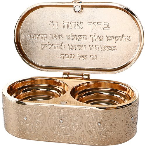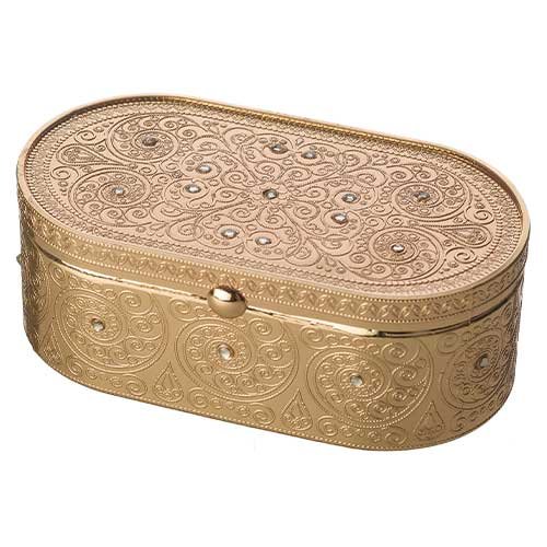 פמוטי נסיעה זהב בקופסא עם מכסה "פיליגרין" משובץ 4×9 ס"מ